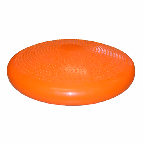Plattan har nabbar på ena sidan för sensorisk stimulans. Fyll plattan med luft till önskad stabilitetsnivå, kan även kombineras med bollplatta för ökad stabilitet. Använd en pump med pluggventil.